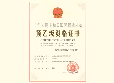 • 中華人民共和國(guó)國(guó)際招標(biāo)機(jī)構(gòu)預(yù)乙級(jí)資格證書(shū)